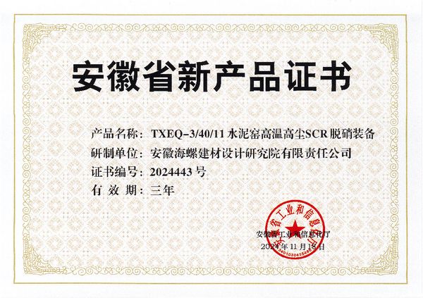近日,安徽省工業和信息化廳公布了2024年第三批省首臺套重大技術裝備名單,海螺設計院“水泥窯高溫高塵SCR脫硝關鍵技術及成套裝備”榜上有名。此前,該項目于11月18日通過了安徽省新產品認定。