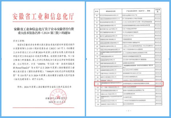 安徽省首臺套重大技術裝備公布通知